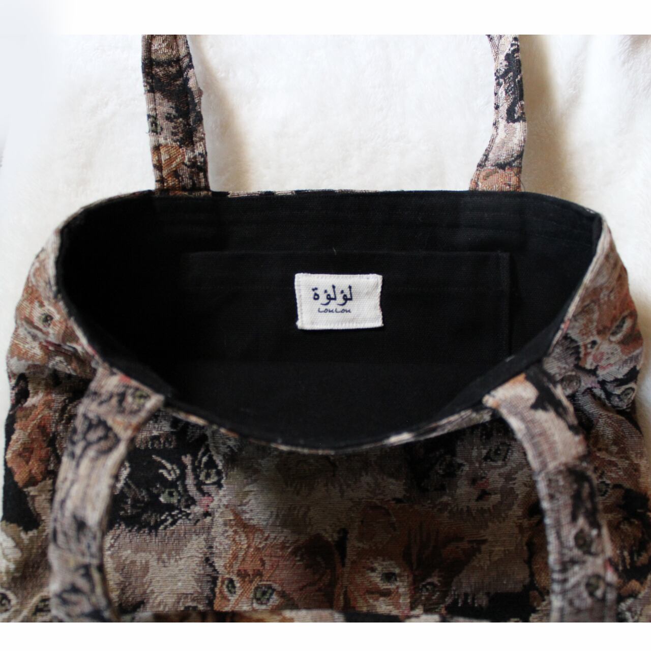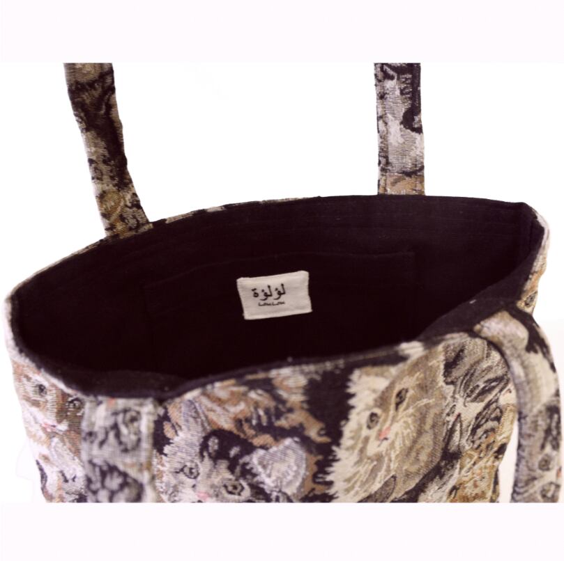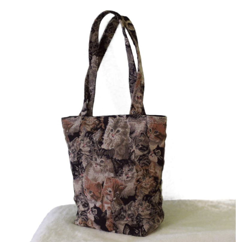 可愛い猫ちゃんがいっぱい!でもデザインは、可愛すぎない。大人な印象のトートバッグです。