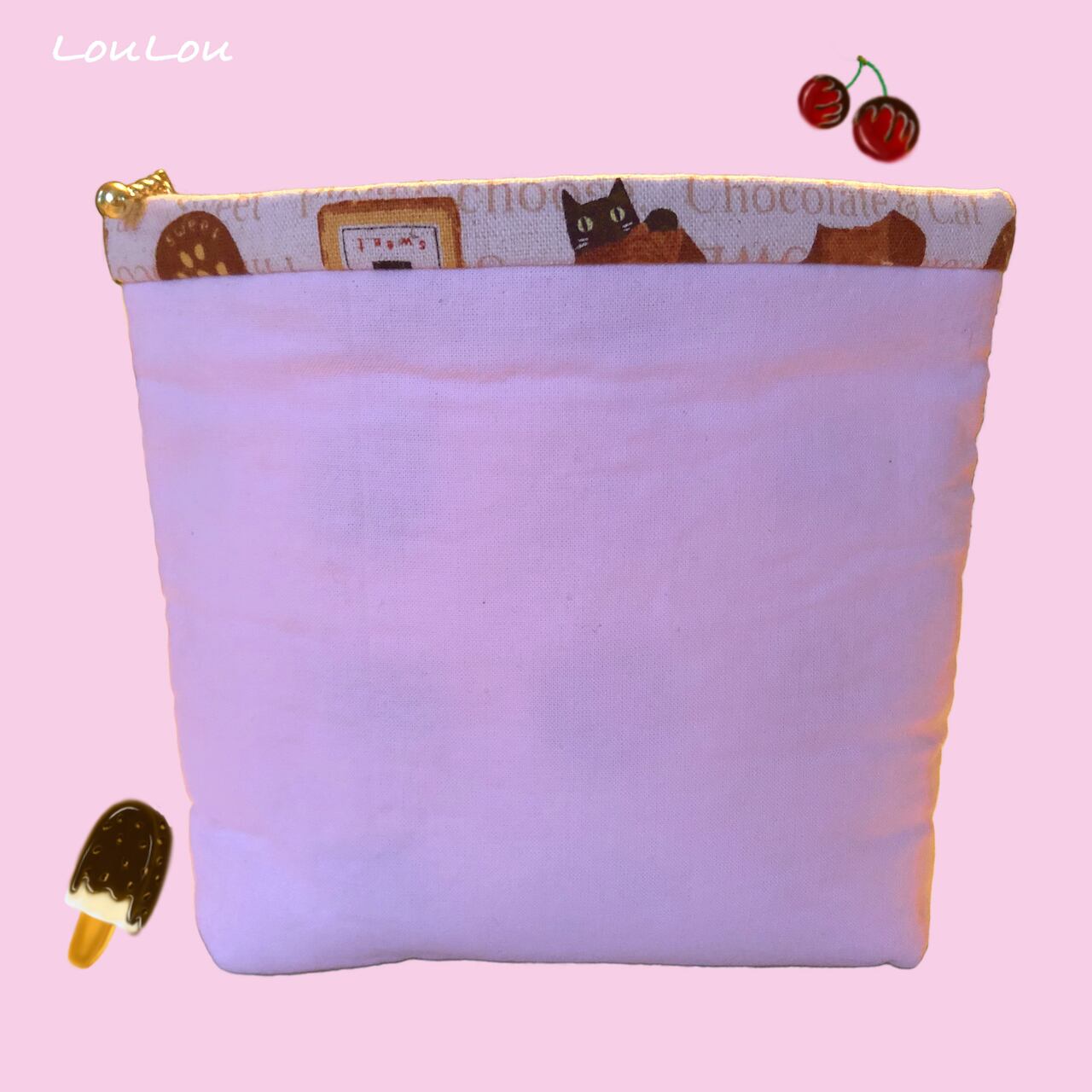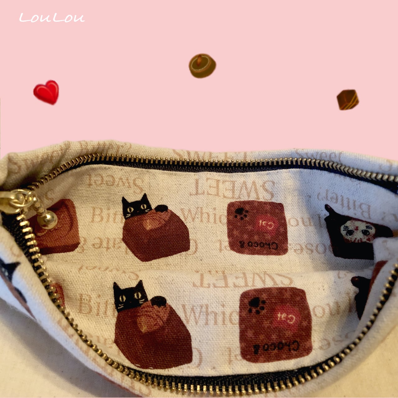 MAiSAデザイン、大きなチョコレートの絵柄が表面についたポーチです。